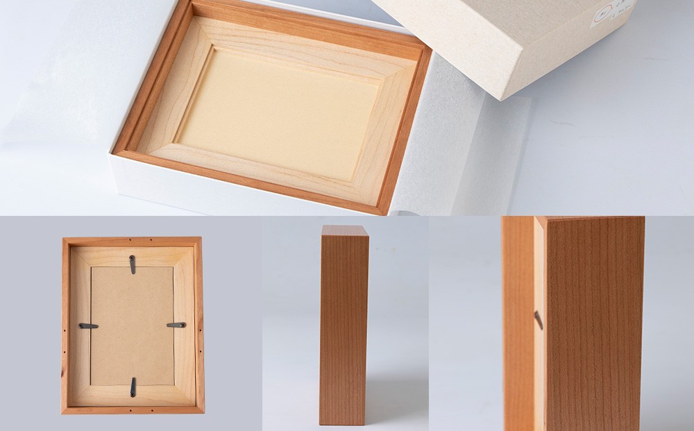 | 容量 | 186mm×148mm×45mm(写真サイズ127×89mm) 本体:チェリー材 塗装:ウレタンオイル |