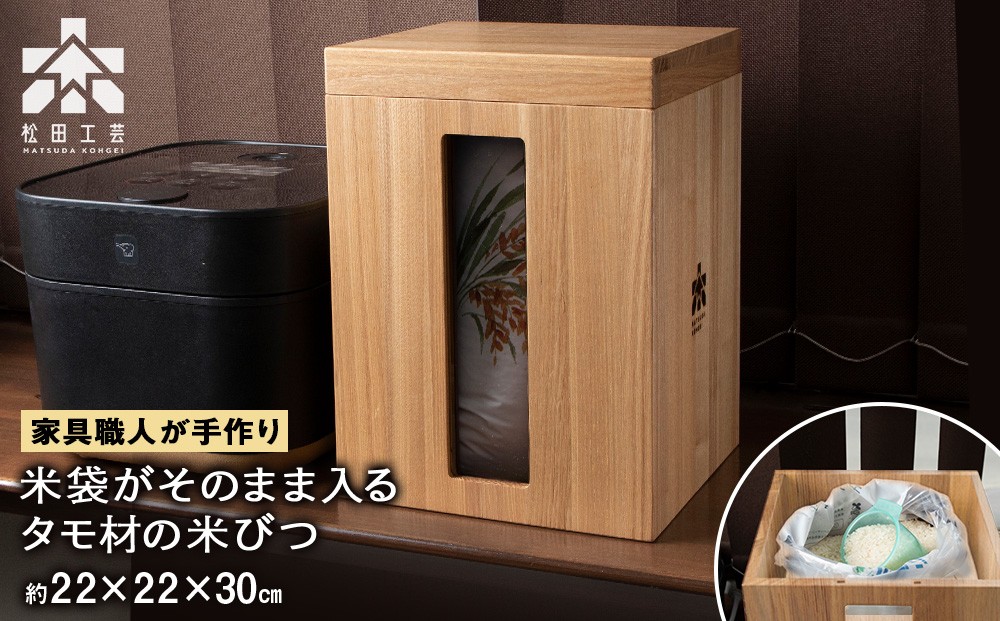 米びつ・タモ材 <松田工芸> 米櫃 こめびつ 収納 米 こめ ライスストッカー