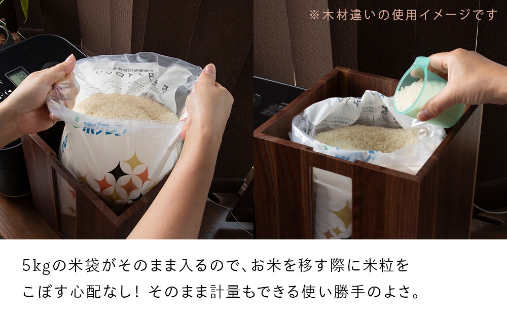 米袋のまま収納できるため、移し替えの手間が省け、米びつが汚れにくいのもポイントです。