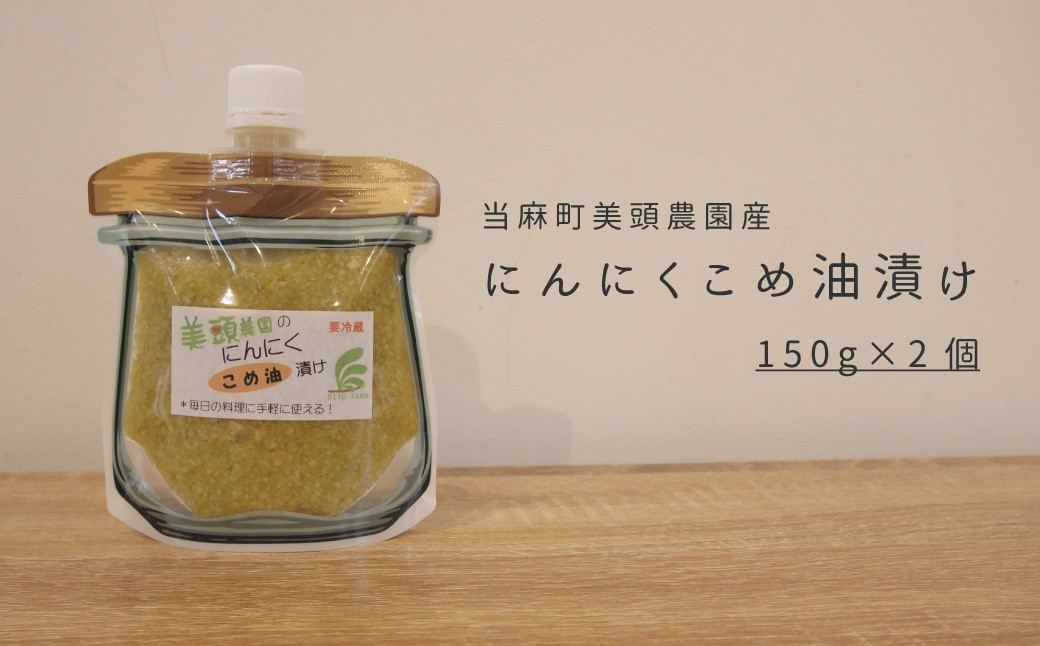 自社栽培のにんにくを使用した万能調味料 にんにくこめ油漬けパウチ 150g×2個