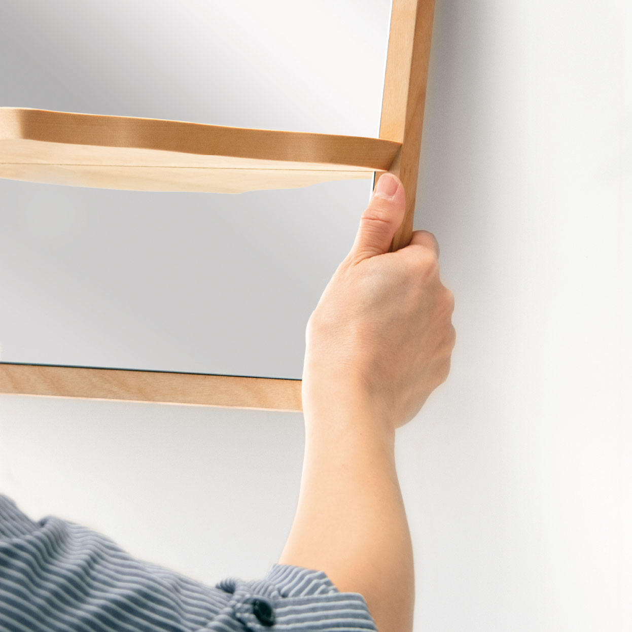壁面家具「moon」のデザイナー、野村悠氏とのコラボレーション第2弾。wakkaは、北海道の山並みをトレースした有機的な棚が、シンプルなミラーに映り込む機能的で個性的な壁面家具です。丸い「旭岳」と四角い「十勝岳」の2種類からお選びいただけます。
