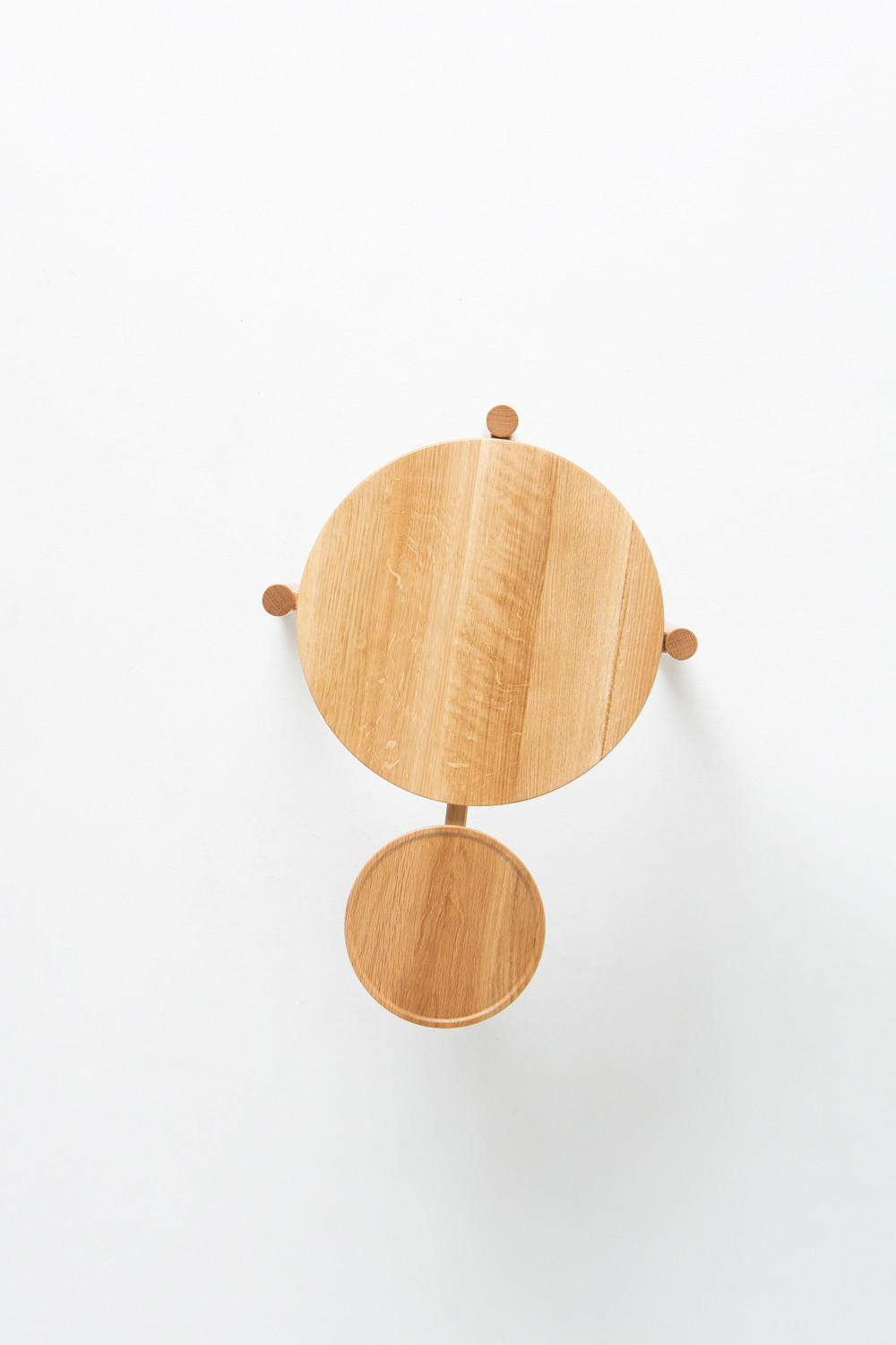 Yuk(ユ?)はアイヌ語で鹿を意味する、その名の通り愛らしいフォルムが新鮮な小さなテーブル付きのスツールです。テーブル付きにも関わらず4脚までスタッキングが可能です。
