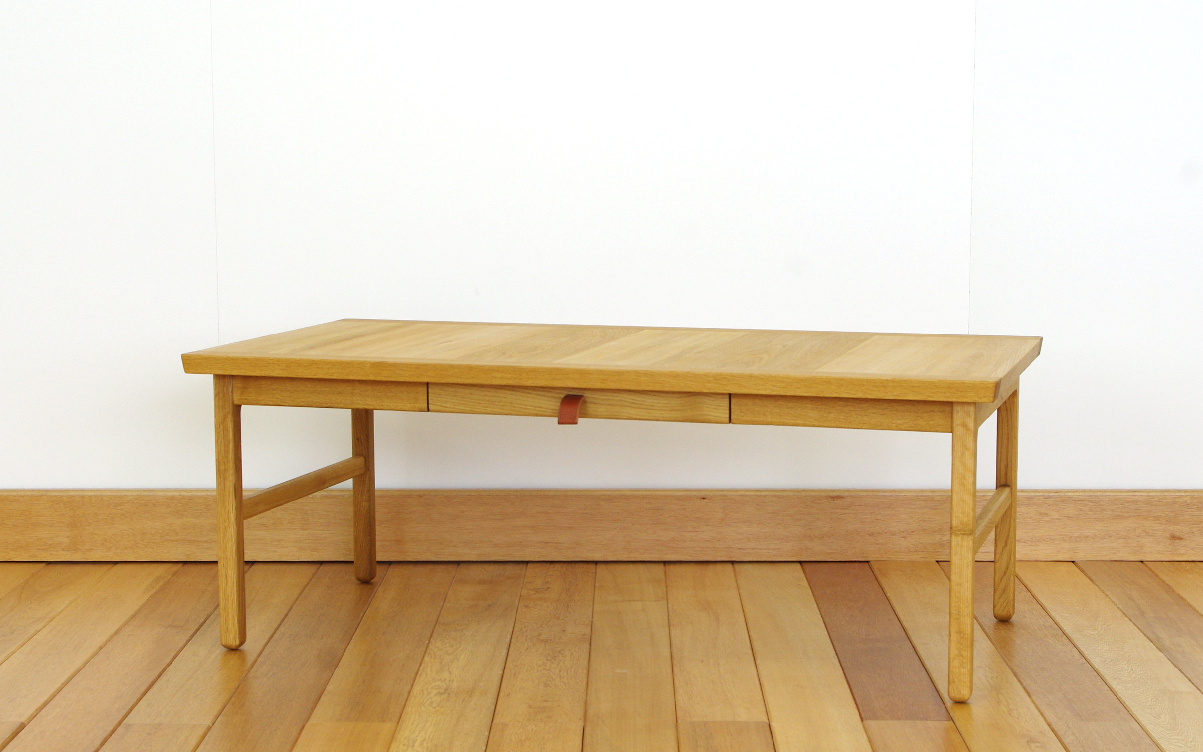 | 容量 | リビングテーブル1台、サイズ/幅:1,060mm 奥行:530mm 高さ:400mm 素材/北海道産ナラ、オイル塗装仕上げ 色/ブラウン(取っ手部分革) |