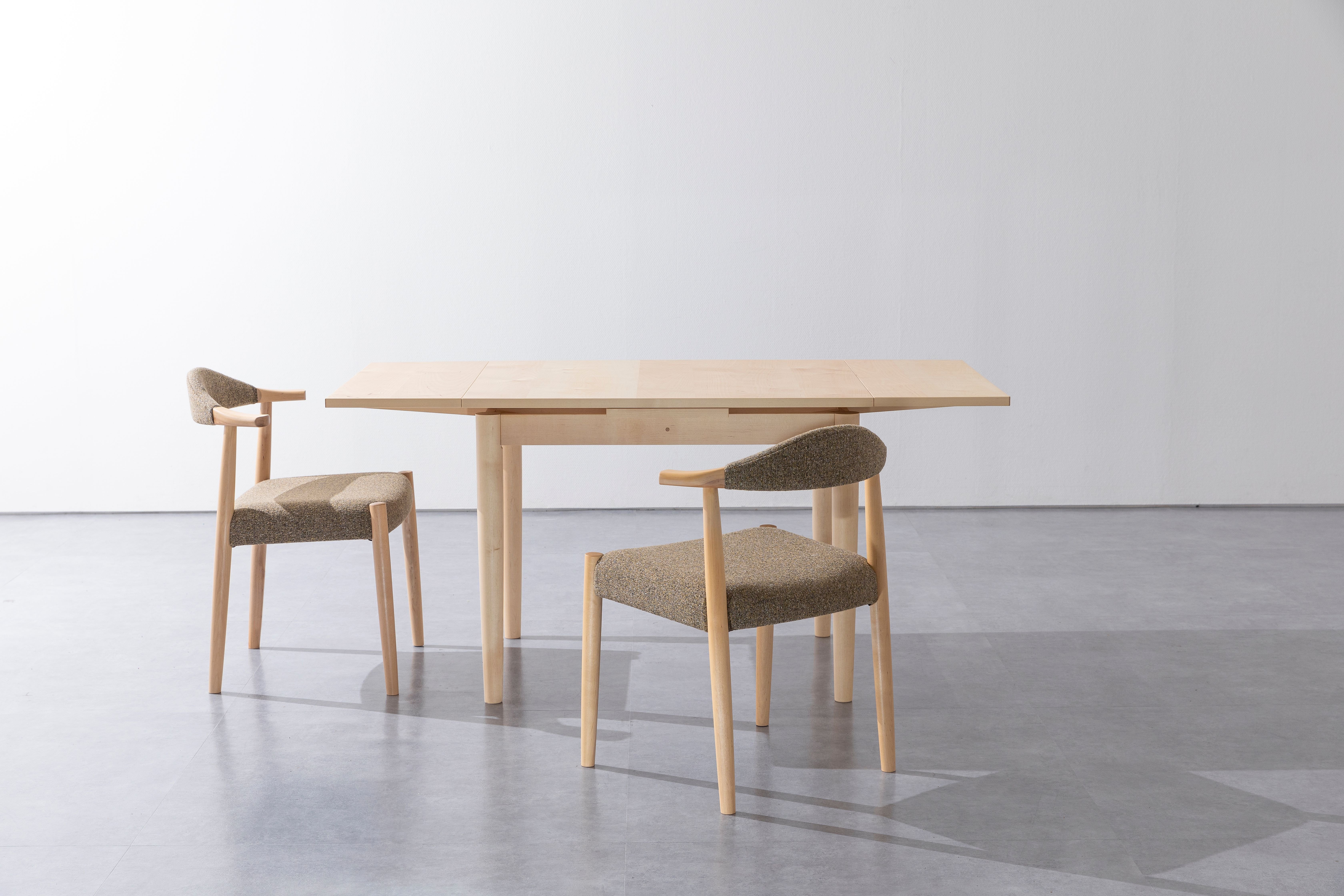 ふだんは2人用広げれば6人用に、北海道シラカバ材で作られた、明るい機能的なテーブル。