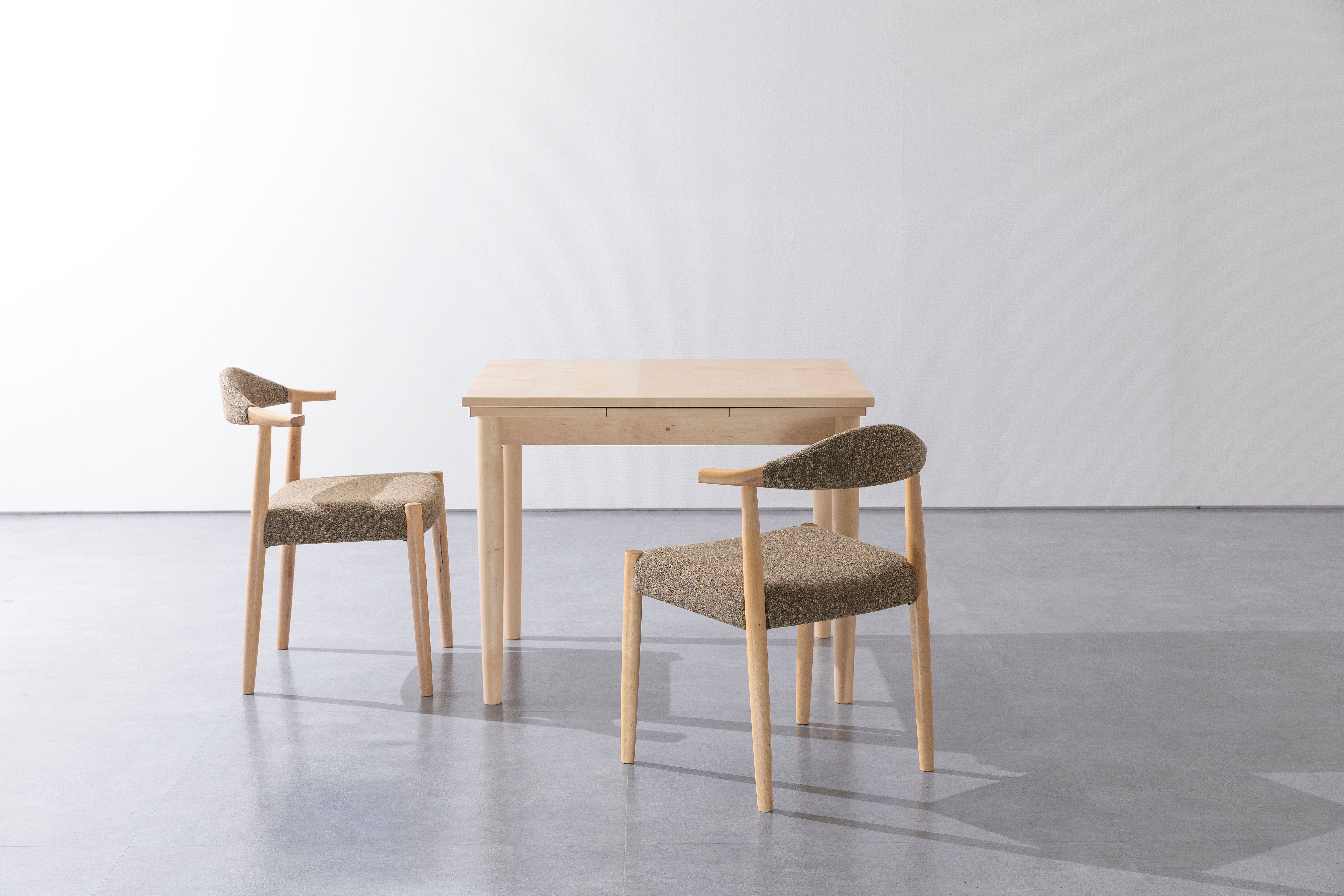 | 容量 | テーブル1台、サイズ/幅:900mm(拡張時1500mm) 奥行:800mm 高さ:700mm 素材/北海道産シラカバ材、ウレタン塗装仕上げ ※納品時の組み立て設置作業付きです。 チェア2脚、サイズ/幅:540mm 奥行:520mm 高さ:730mm(座面高420mm) 素材/北海道産シラカバ材、オイル塗装/張地:布張り |