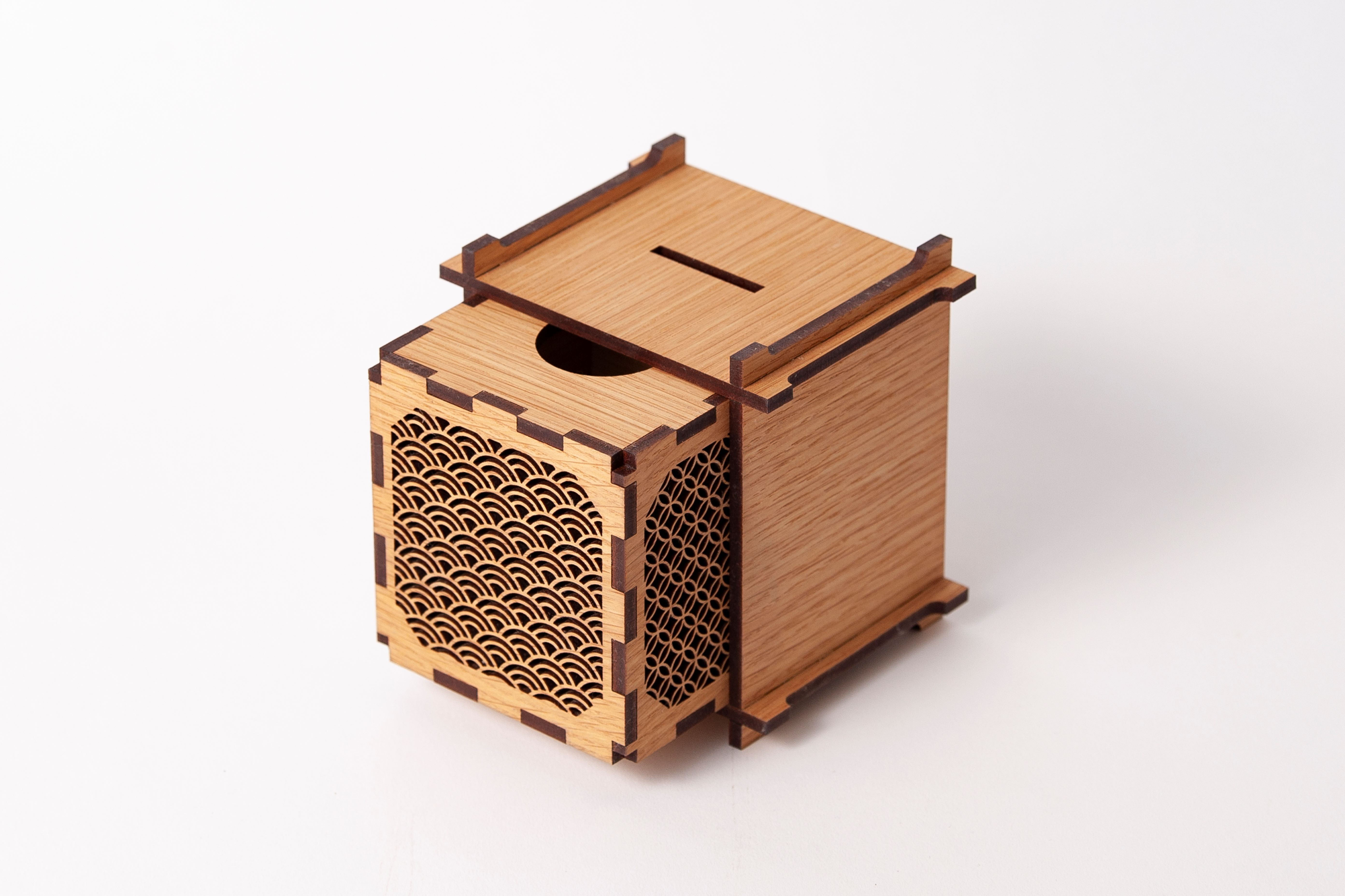 | 容量 | 貯金箱1点、サイズ/幅:110mm 奥行:110mm 高さ:85mm 素材/ナラ、オイルクリア |