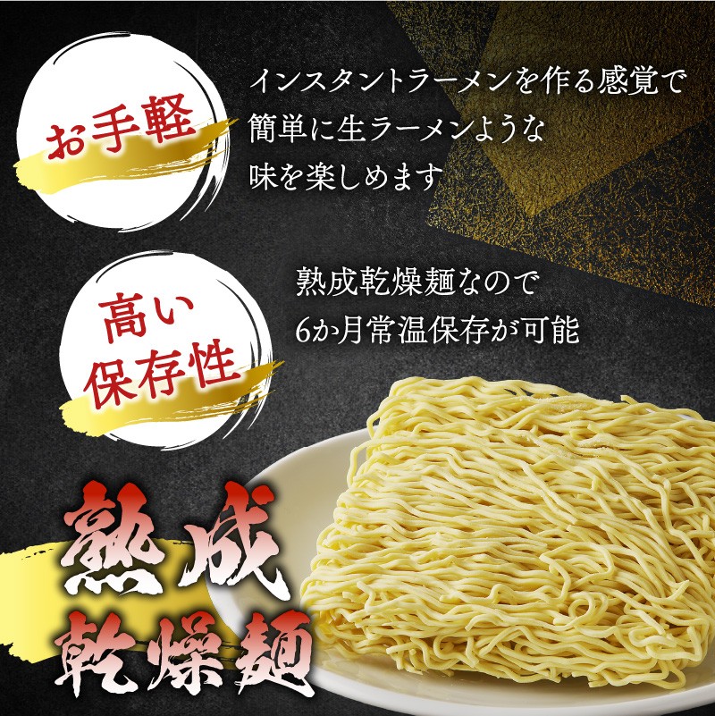生ラーメンをそのまま48時間低温熟成させた熟成乾燥麺で日持ちも長く、旭川市内の名店ラーメン各種のオリジナルあふれるラーメンを味わえます。