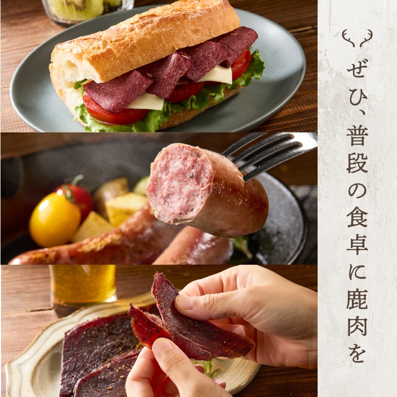 | 容量 | エゾ鹿 加工肉 3点セット ・スモークハム 1袋(60g) ・ソーセージ 1袋(240g) ・ジャーキー 1袋(40g) |