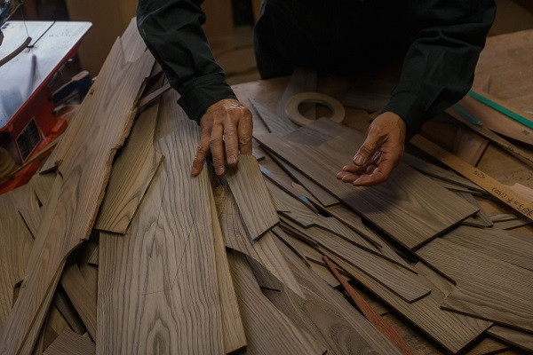 美瑛町の美しい風景を自然の色合いと木目の流れを活かした組木技法で再現しました。