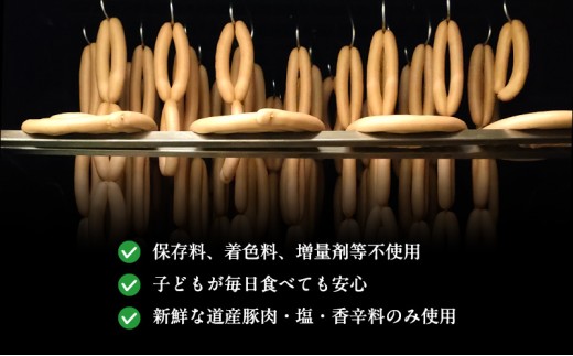 北海道産の豚肉を使用し、お店でミンチ、味付、腸詰、ボイル、燻煙しているソーセージのため。