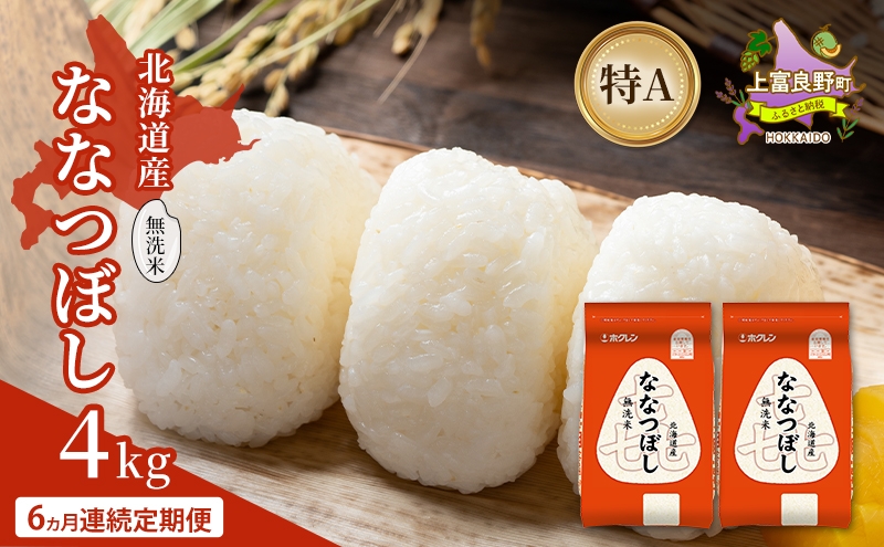 【6ヵ月連続定期便】北海道産 喜 ななつぼし 無洗米 4kg 米 特A 獲得 白米 ごはん 定期便 定期配送 6ヵ月 道産米 ブランド米 4キロ お米 ご飯 米 北海道米 JAふらの ホクレン ホクレン米 送料無料 北海道 上富良野町