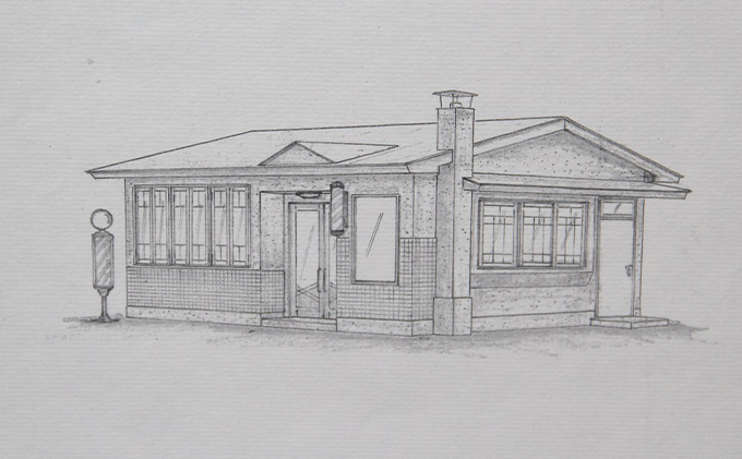 映画「鉄道員(ぽっぽや)」ロケセットデザイン画(複写)【床屋】 北海道 南富良野町 デザイン画 映画 鉄道員 ぽっぽや