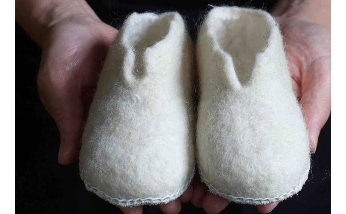 | 容量 | ベビーシューズ Sサイズ(12cm) 本体:ウール100% 靴底:革 サイズ:12cm カラー:白(染めを施していない、本来の羊そのものの色です。) 原産地:主な羊毛は北海道産 素材:羊毛、底の部分に革、縫い糸は麻糸 |