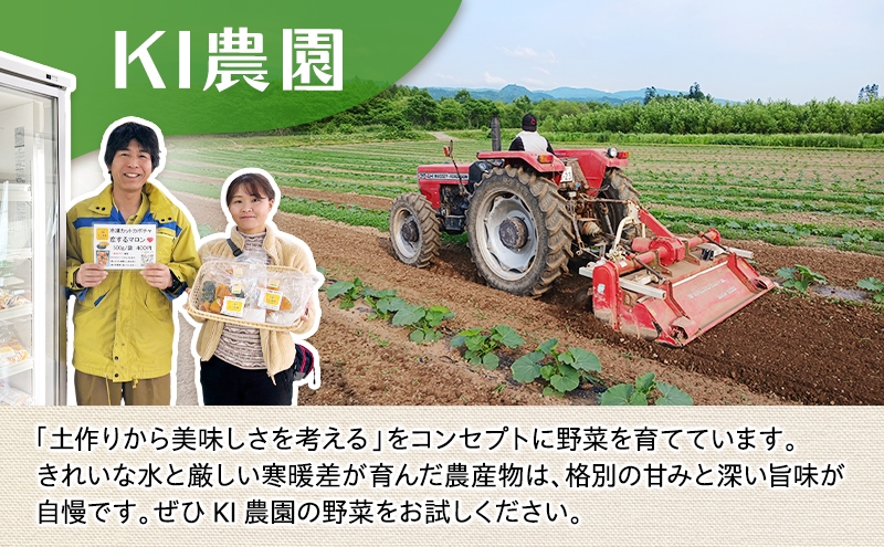 14haの畑で北海道のきれいな水と厳しい寒暖差が育んだ農産物は、格別の甘みと深い旨味が自慢です。ぜひKI農園の野菜をお試しください。