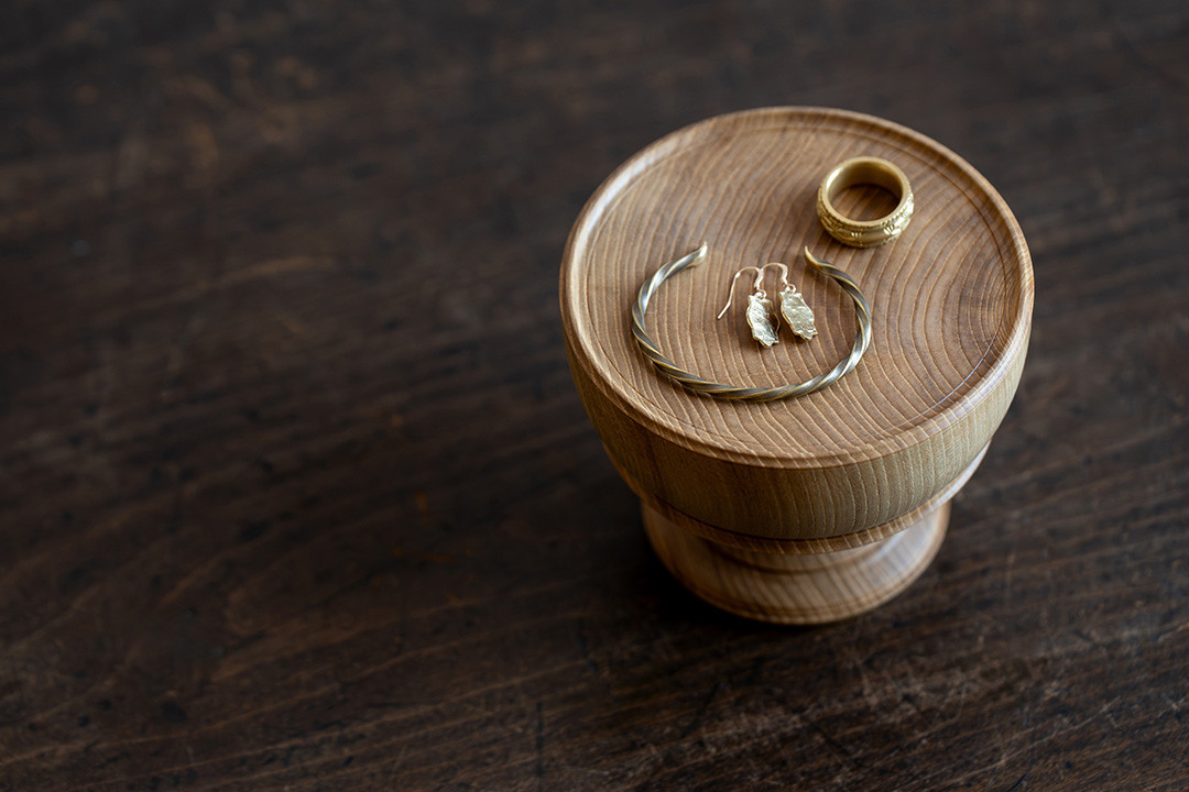 表面には、天然のオイル仕上げが施され、時間が経つにつれ、深みのある色に変化していきます。一本の樹木のように、育つ楽しさが味わえる燭台です。台の直径が12cmとサイズ感もあるので、高台プレートとしてもお使いいただけます。日々大切に使うアクセサリーや時計などの指定席にも。
