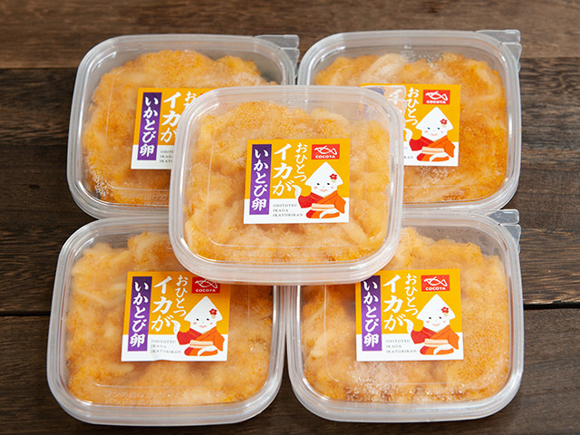 国産のイカにたっぷりとトビッコを和えたイカトビ卵です。ご飯のお供にどうぞ。お好みに合わせてお醤油をたらしても美味しいです!