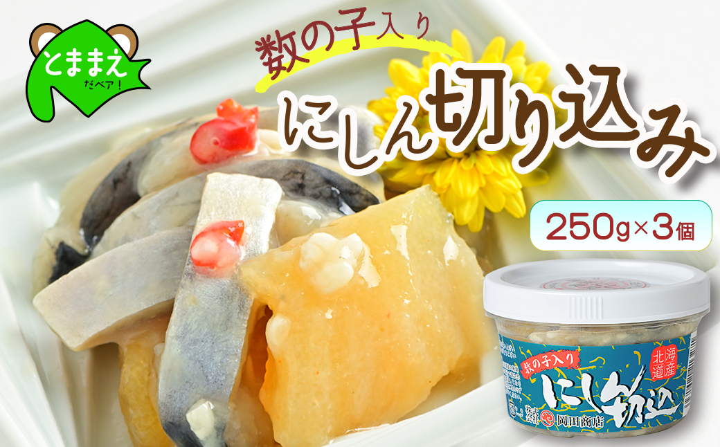 北海道産のにしんを昔ながらの製法で、数の子もたっぷり入ったにしんの切り込みです 数の子入り にしん切り込み 250g×3個