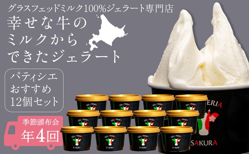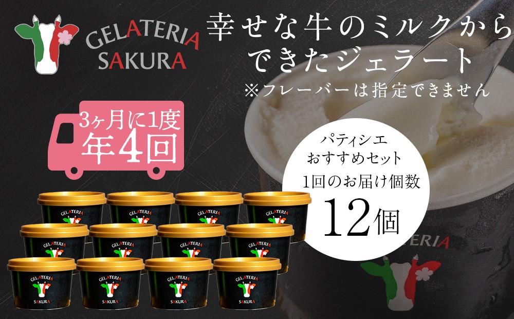 幸せな牛のミルクからできたジェラート パティシエおすすめ12個セット 年4回頒布会・定期便<㈱SAKURA STYLE>