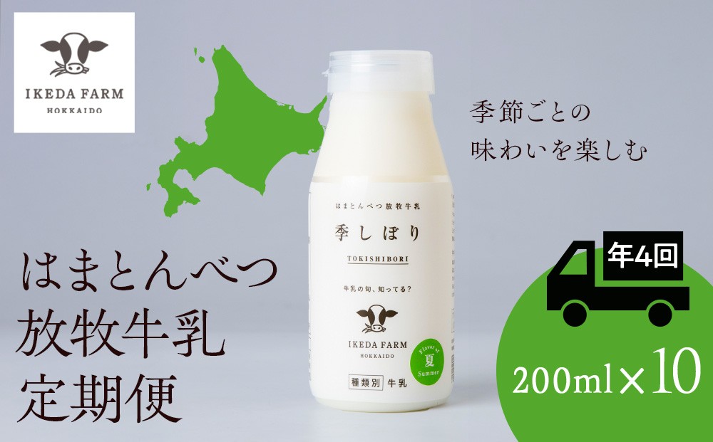 【定期便 年4回発送】季しぼり 200ml×10本【池田牧場】