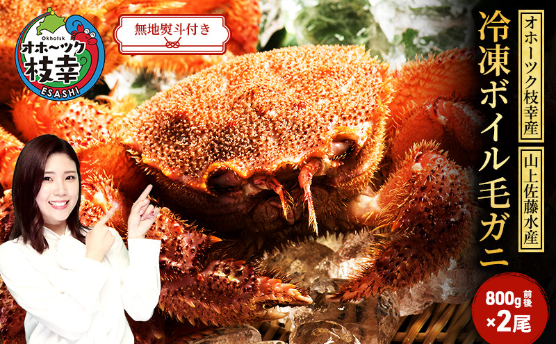 【無地のし】 冷凍ボイル毛ガニ 800g前後×2尾[オホーツク枝幸産]山上佐藤水産 カニ かに 毛ガニ 北海道 海鮮 名物 贈答用 ギフト お中元 お歳暮 お祝い のし 熨斗