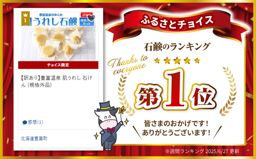 チョイス限定 製造過程で生じた規格外商品です!成分はそのままで気軽にお試しいただけます。 【訳あり】豊富温泉 肌うれし 石けん (規格外品)
