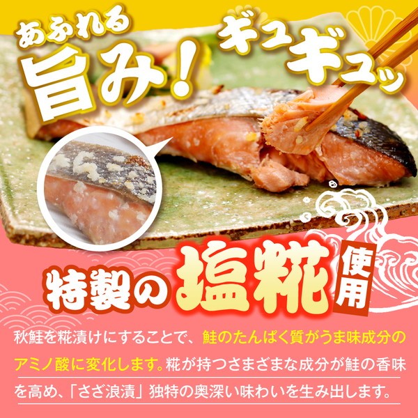 佐藤水産特製の塩糀に鮭を漬け込んだ「さざ浪漬」と