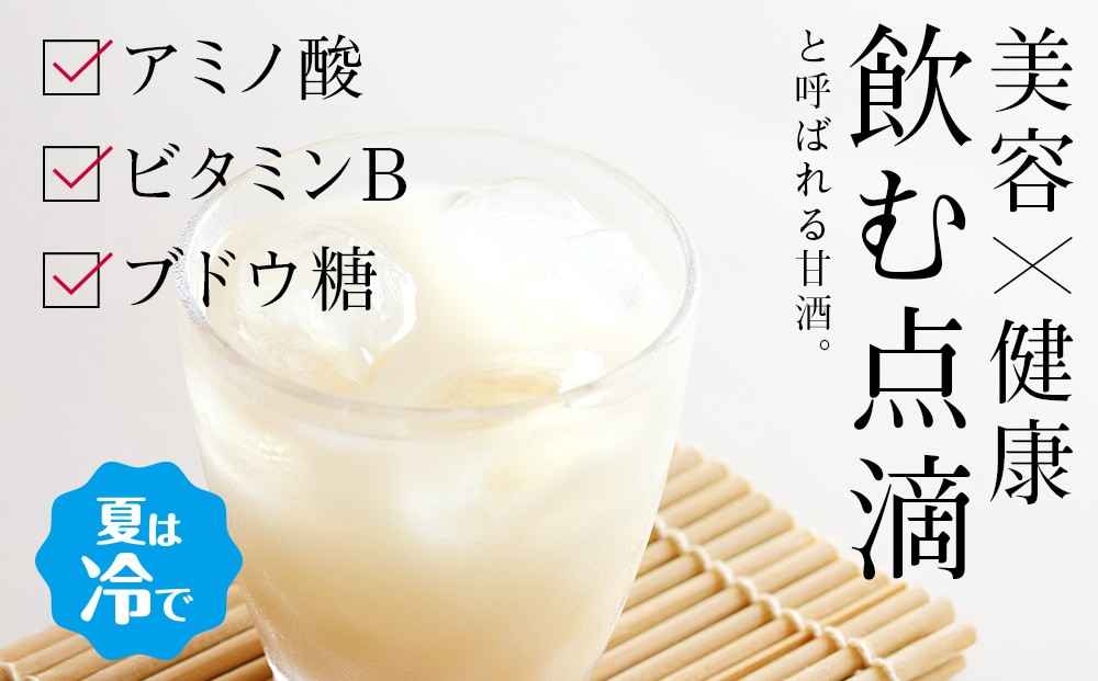 | 容量 | 清涼飲料水(甘酒) 内容量:500g×4本 |