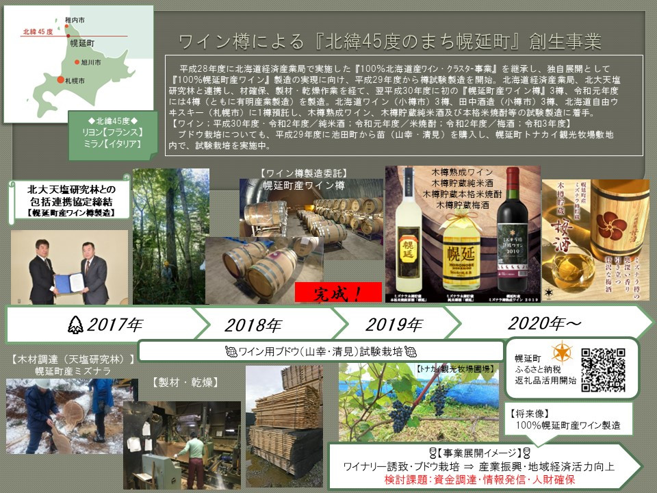 幌延町及び町産ミズナラ樽のPRを目的に開発した商品であり、外見上も町のPRに資する