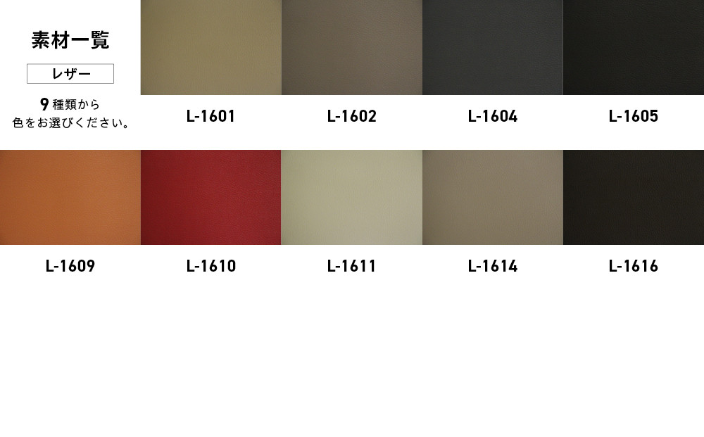 お選びいただけるレザー及びファブリックの種類はこちらからご確認ください。