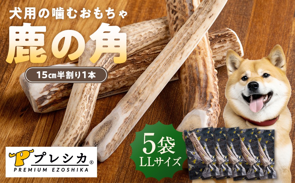 犬用の噛むおもちゃ(デンタルケア・ストレス発散等) プレシカ 鹿の角 LLサイズ (15センチ半割り1本) 5袋 | 北海道津別町