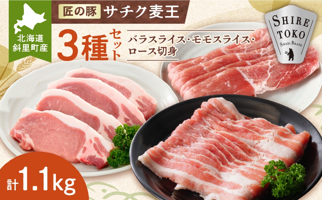 北海道知床斜里産ブランド豚肉「サチク麦王」3種計1.1㎏ ロース切身、モモ、バラ_ロース切身 モモ バラ 北海道 斜里 ジューシー 甘み 美味しい 送料無料 <配送不可地域:離島・沖縄県><1334209>