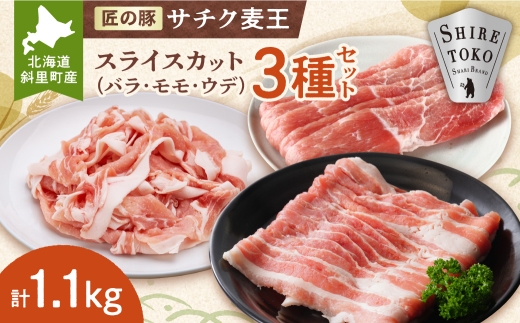 知床斜里産ブランド豚肉「サチク麦王」スライスカット 3種計1.…