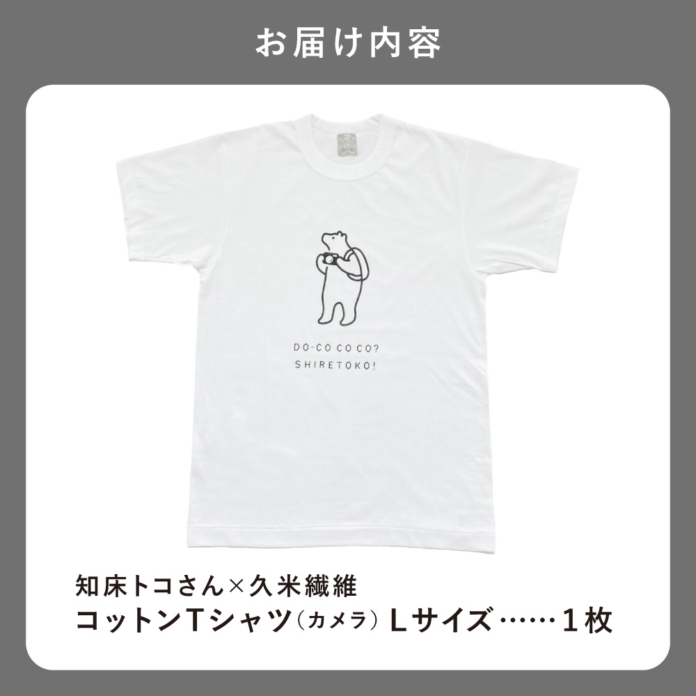 「知床トコさん」×久米繊維 コットンTシャツ カメラ柄 Lサイズ