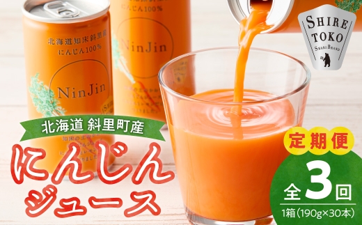 <毎月定期便>にんじんジュース (190g×30本) 無添加 北海道産 人参 野菜ジュース 全3回
