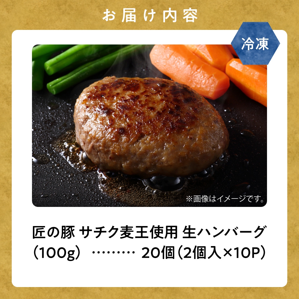 北海道産豚肉 冷凍 生ハンバーグ 20個 知床斜里産「サチク麦王…