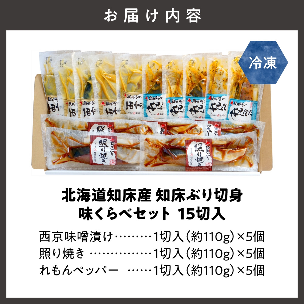 北海道 知床 ぶり 切り身 3種味付け 照り焼き 西京味噌漬け レモンペッパー 冷凍 セット 魚介 海産物 ギフト 美味しい_北海道知床産 知床ぶり切身味くらべセット 15切入