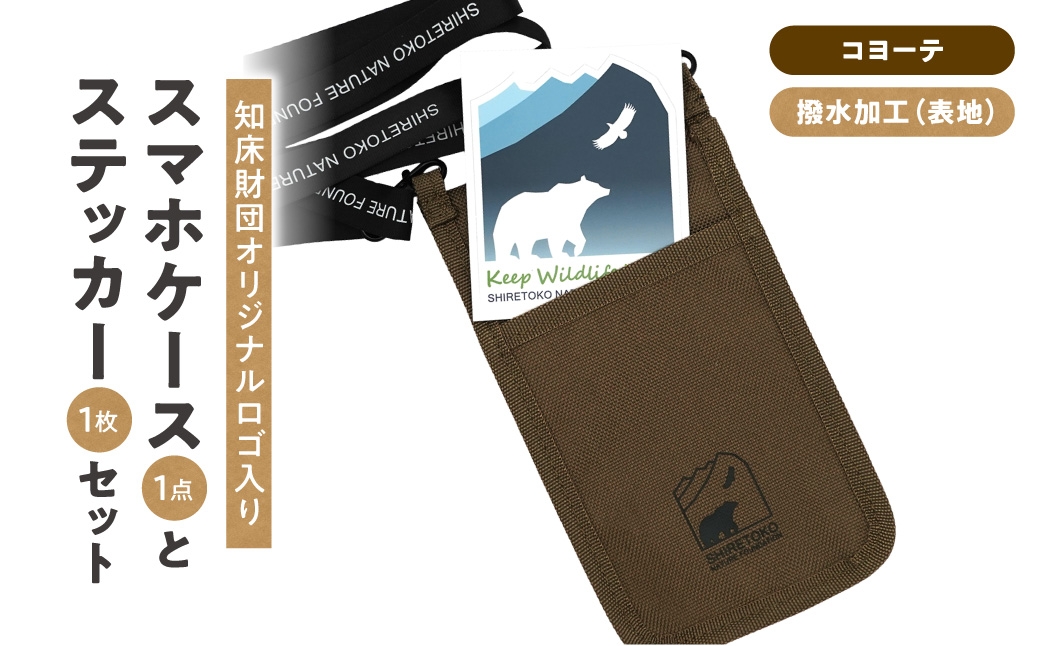 知床財団オリジナルロゴ入りスマホケースとステッカーセット<コヨーテ>