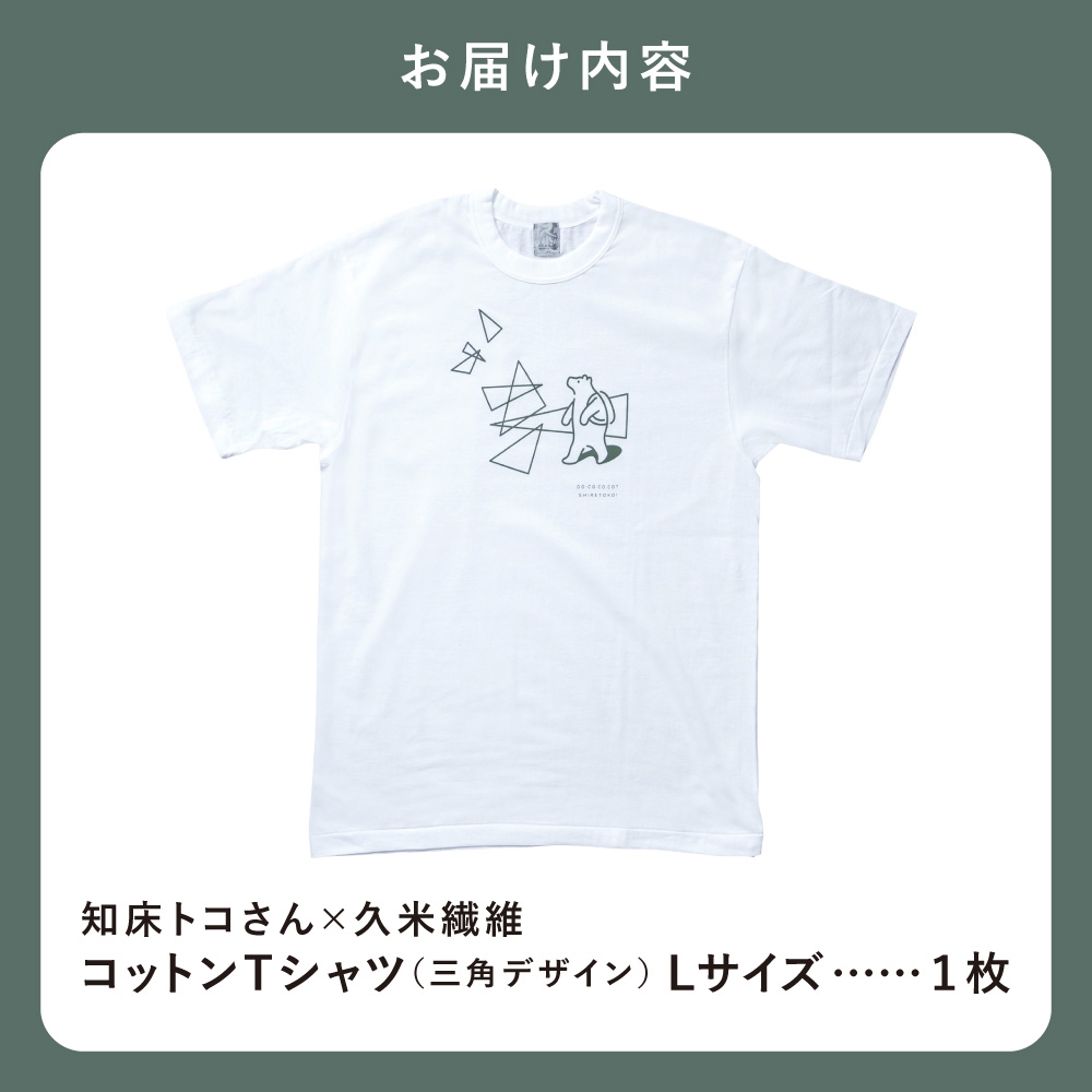 「知床トコさん」×久米繊維 コットンTシャツ 三角デザイン柄/白 Lサイズ 半袖