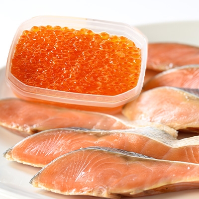 天然新巻鮭は新鮮な状態で一切れずつ真空パックされており、いくらは瞬間凍結で瞬時に冷凍されておりますので、プチプチとした粒の食感をそのまま保存しています。