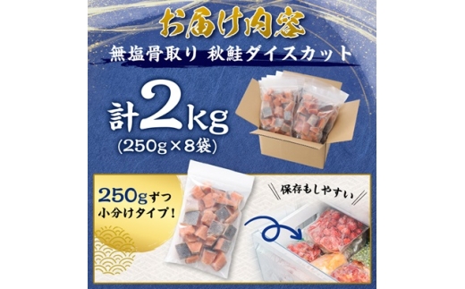 <訳あり>北海道斜里町産 骨取り無塩 天然ダイスサーモン 2kg<無添加>【1654865】