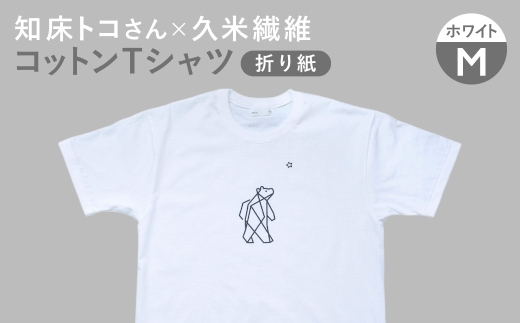 「知床トコさん」×久米繊維 コットンTシャツ Sサイズ・ホワイト 折り紙柄 半袖