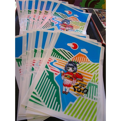 訓子府町で愛されている「たれカツ丼」の公式キャラクター『たれカツ乙女 くるね』ちゃんクリアファイル16枚入りです。訓子府町のパンフレットや製品案内と共に発送いたします。