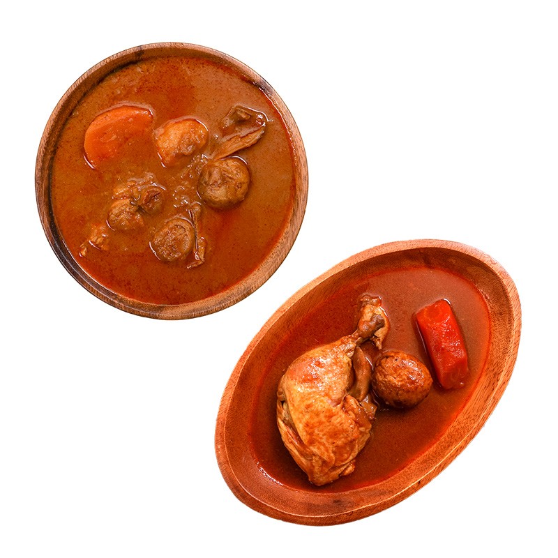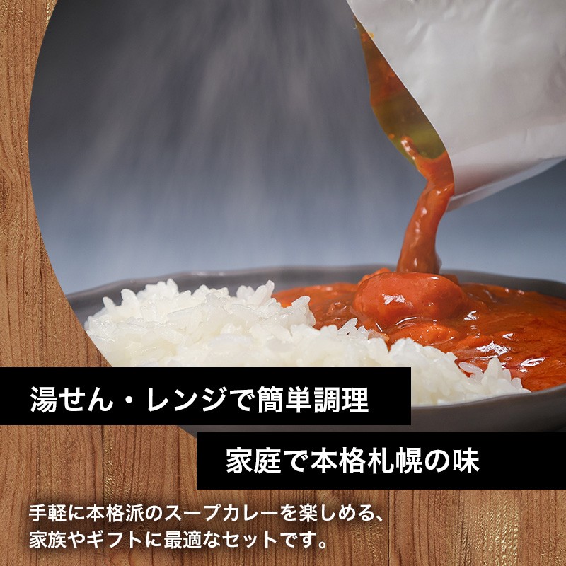 骨付きチキンレッグ、北海道産のじゃがいも、にんじん、まいたけが入ったスープカレー 本場札幌スープカレー チキン・ホタテ 2種 6個セットen01-00250