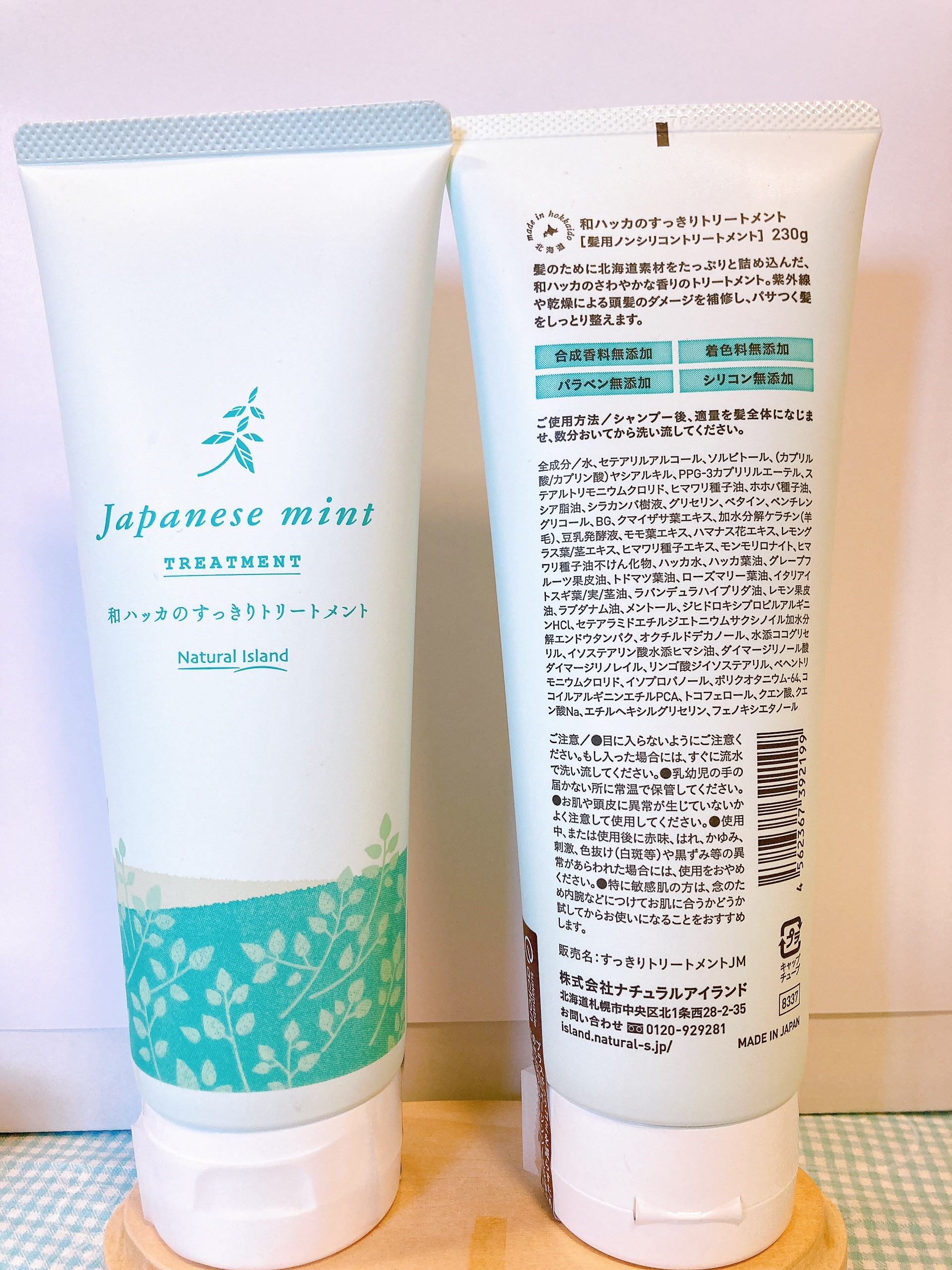 和ハッカウォーター、和ハッカ葉油、クマザサ葉エキス、クレイ、ハマナス花エキス、ヒマワリ種子油、ヒマワリセラミド、白樺樹液、ビート、モモの葉キスほか