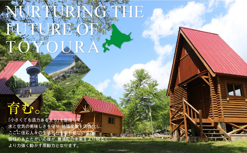 北海道豊浦町は、「海の青」、「山の緑」、「太陽の光」、この風光明媚なボルガノベイ (噴火湾)に面した町です。この北の大自然を大切に、先人たちは多くの汗を流しながら、豊かな町づくりに努力を重ねてきて、現在の豊浦町があり、私たちは、この流した汗にまた一汗一汗適応した施策を推し進め、次世代に受け継いでいかなければならないと考えています。