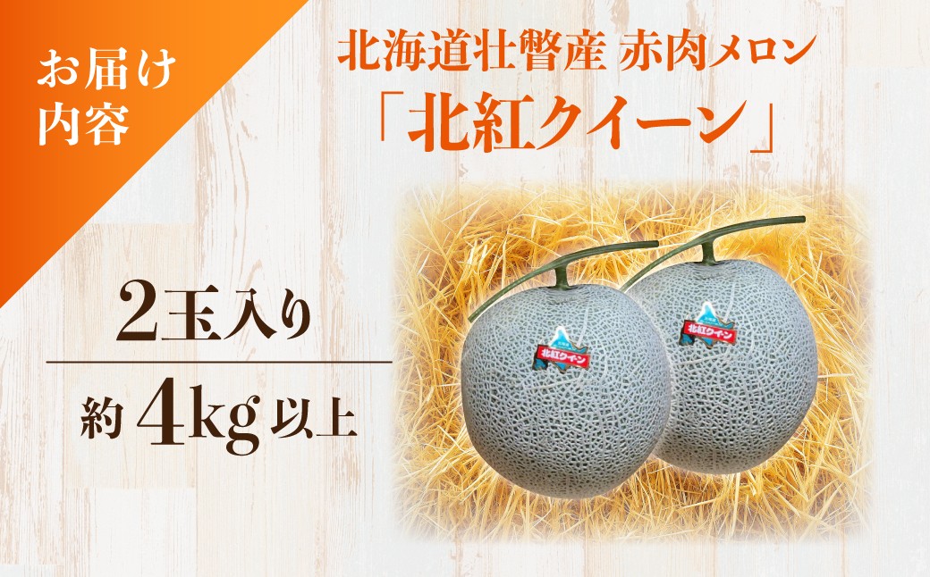 <2026年7月上旬よりお届け>北海道壮瞥産 赤肉メロン「北紅クイーン」2玉入り約4.0kg以上 【 ふるさと納税 人気 おすすめ ランキング メロン めろん 北紅クイーン 果物 甘い 赤肉 北海道 壮瞥町 送料無料 】 SBTP003