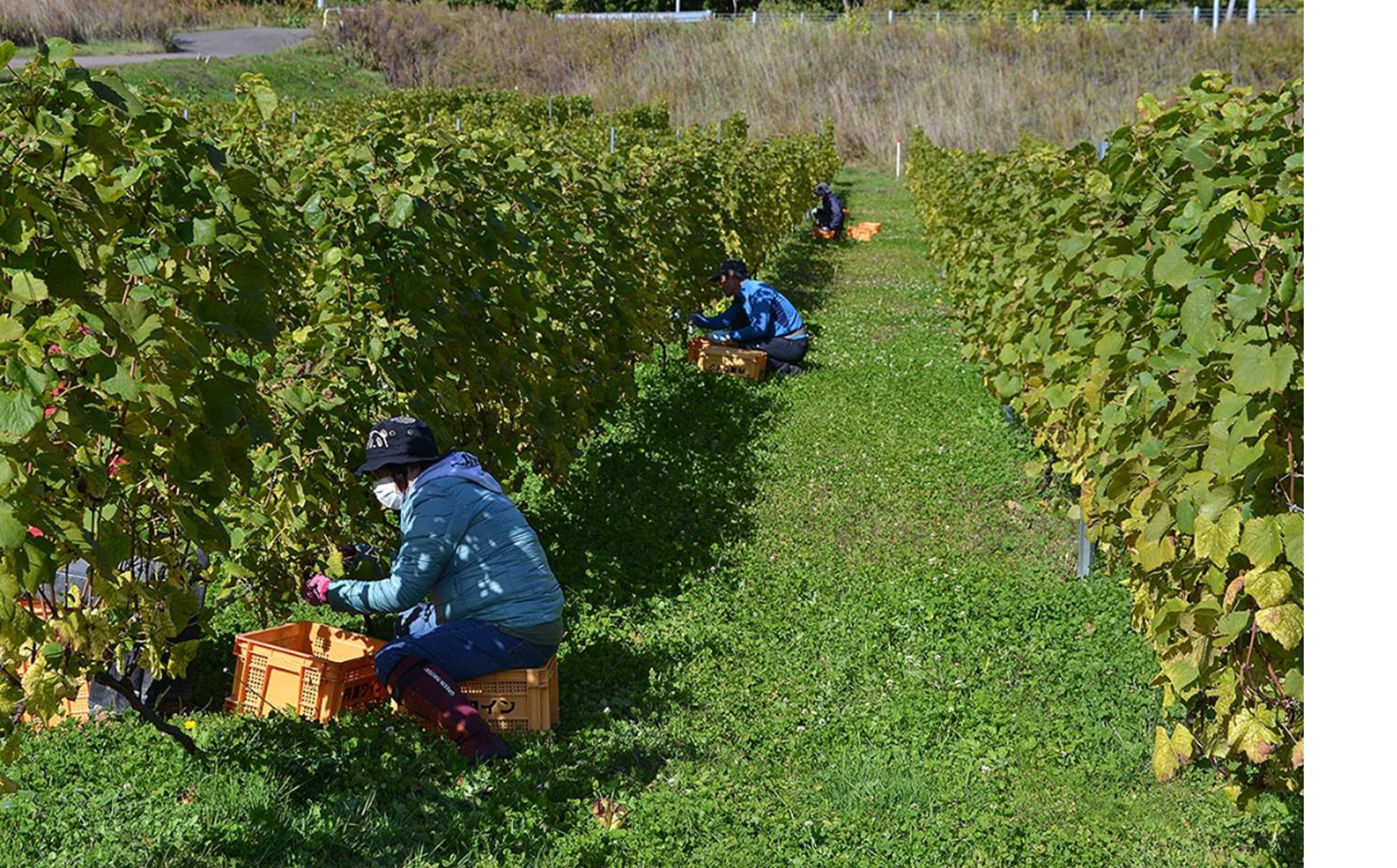 2024年は生育期の日照時間が多く、降水量が少なかったため、糖度・酸度ともに凝縮感のある良質のぶどうが収穫できました。