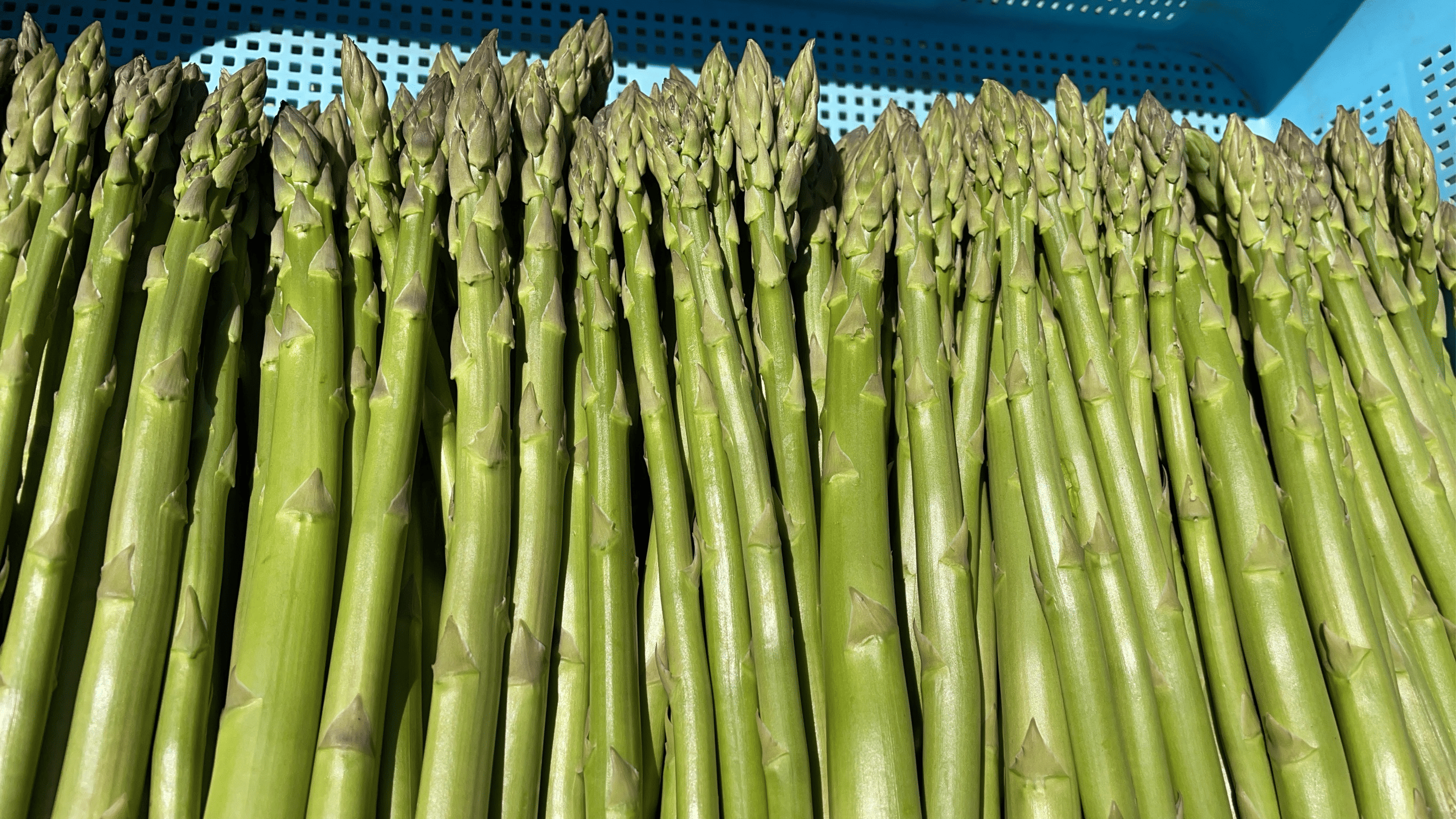 冬期間に栄養分をしっかりと蓄えたアスパラは、みずみずしく柔らかいのが特徴です。シンプルに塩茹でしたアスパラにハムを巻いてお召し上がりいただくのがおすすめです。