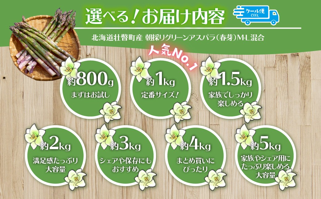 【2026年予約】朝採りグリーンアスパラ(春芽)M-L混合 北海道壮瞥町産 選べる容量約800g~5kg 【ふるさと納税 人気 おすすめ 北海道 アスパラガス あすぱら 朝採れ 野菜 旬 春 とれたて 甘い 冷蔵 産地直送 グルメ 送料無料】SBTAJ031-v