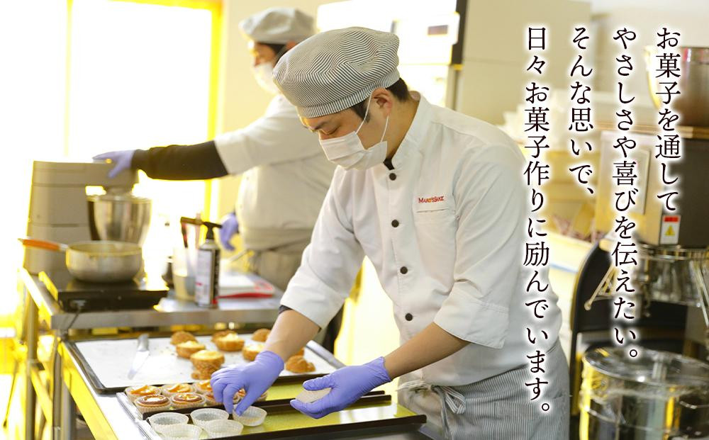 北海道産の小麦、バター、砂糖、地元白老産の卵を使用し、防腐剤や膨張剤などは一切使用しない、安心と安全のマドレーヌ。 店名になっている自慢の逸品であり、一つ一つ手作業で丁寧に焼き上げています。直径約10㎝と少し大きめのマドレーヌで、創業以来お客様に愛され続けて35年。今も変わらず人気です。 賞味期限は14日ですが、お届け直後は特に美味しく味わっていただけます。お早目にお召し上がりいただくことをお勧めいたします。 【保存方法】直射日光、高温多湿を避け保存してください。 【原材料名】 卵、砂糖、小麦粉、バター、スライスアーモンド、オレンジリキュール 【製造場所】 白老町 ◆お礼の品・配送に関するお問合せ先◆ 白老町ふるさと納税コールセンター 営業時間 9:00~17:30(祝土日を除く) TEL:011ー807ー0176 ※12月は土・日曜日も対応しております ■関連キーワード セット お菓子 デザート スイーツ ケーキ マドレーヌ